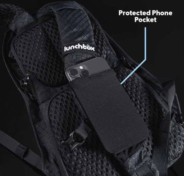The hydration backpacks also have a protected phone pocket on the shoulder strap made of high-quality, stretchable mesh material. This dedicated pocket ensures a secure place to hold your phone while maintaining easy access for personal use.