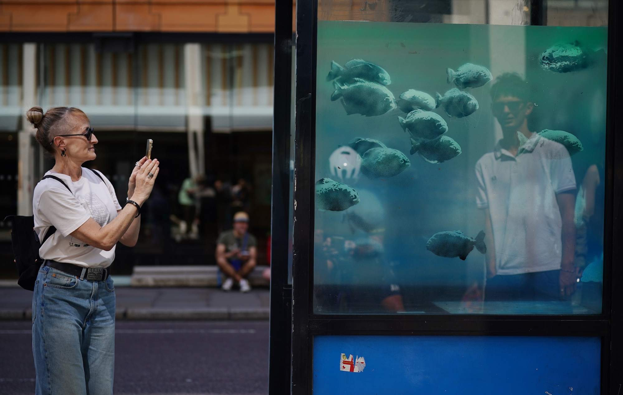 The elusive artist took to Instagram to indicate off his newest piece of fish swimming on the glass-fronted field on Ludgate Hill, which appeared in a single day, close to The Previous Bailey and St Paul’s Cathedral.