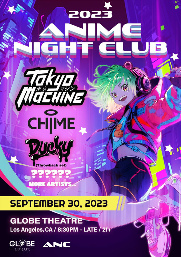 On Saturday, September 30th, “Anime Night Club 2023” will take over the Globe Theatre in Los Angeles. DJs will be performing throughout the evening as fans indulge in cosplay, anime artwork installations and more.